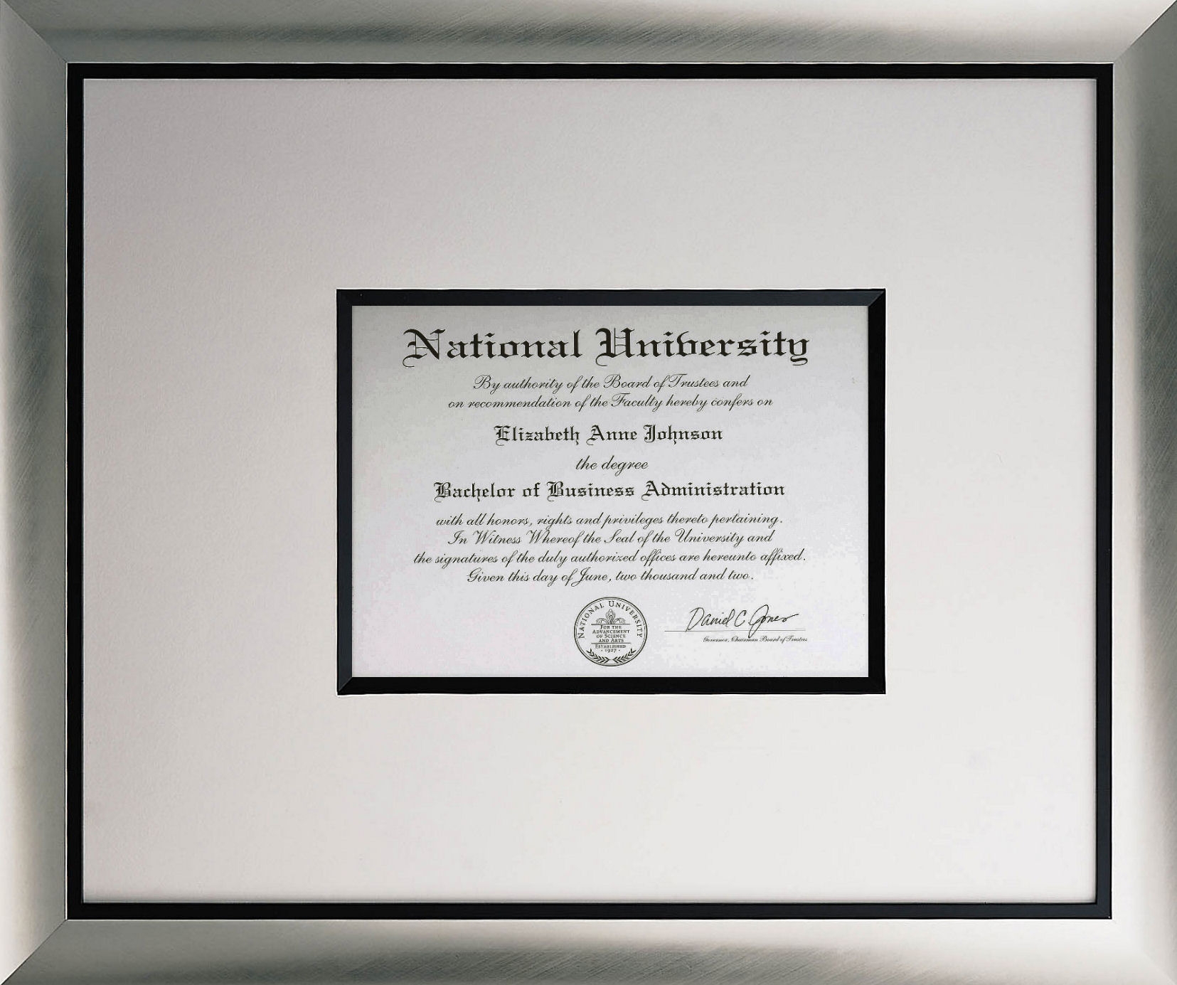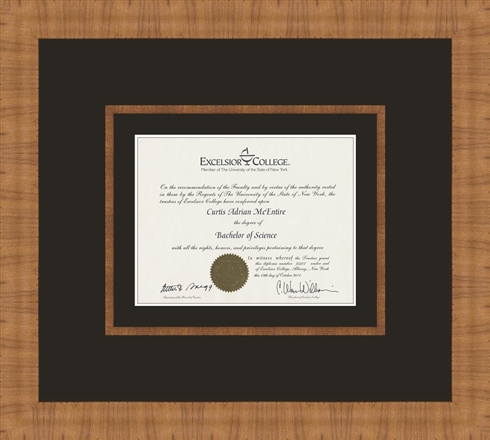 If you want a clean dressy look to hang your diploma in the office this Intaglio frame choice is perfect with a wide white matt and matching fillet from Larson -Juhl